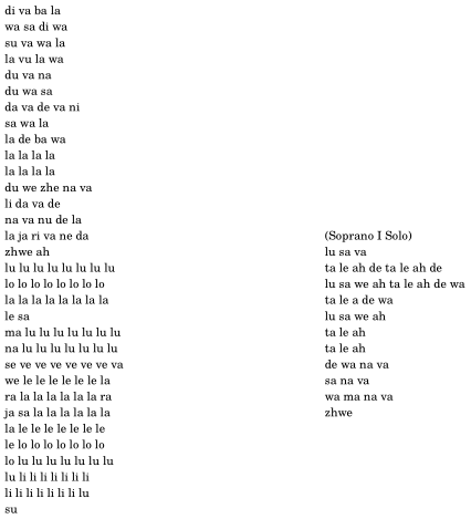 - Other musical sections are built from syllables detached from any semantic meaning.